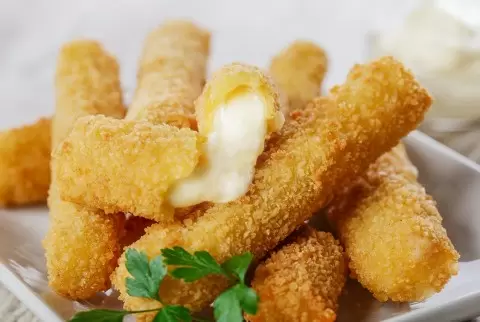 - Чтобы панировка лучше держалась, отправьте сыр в морозильник на 10 минут перед жаркой.