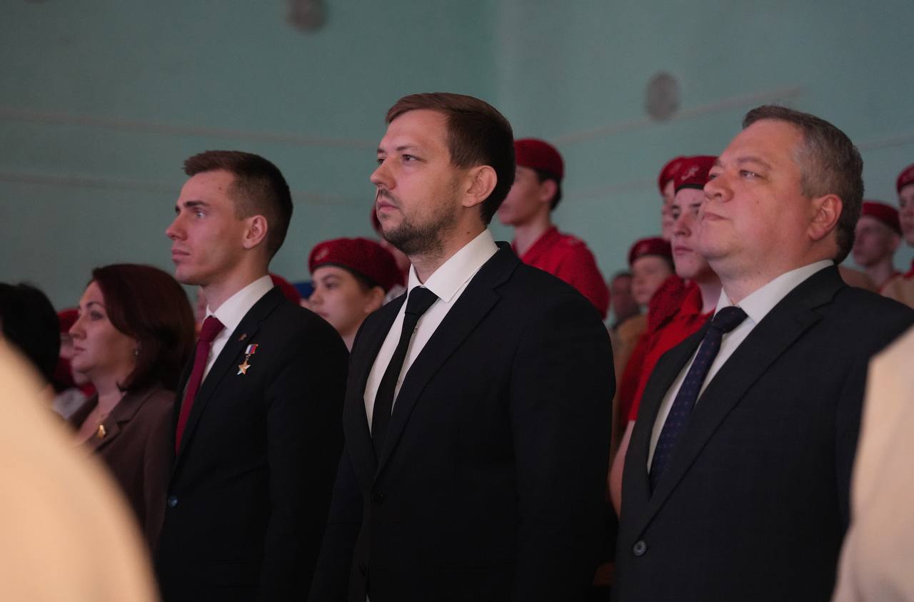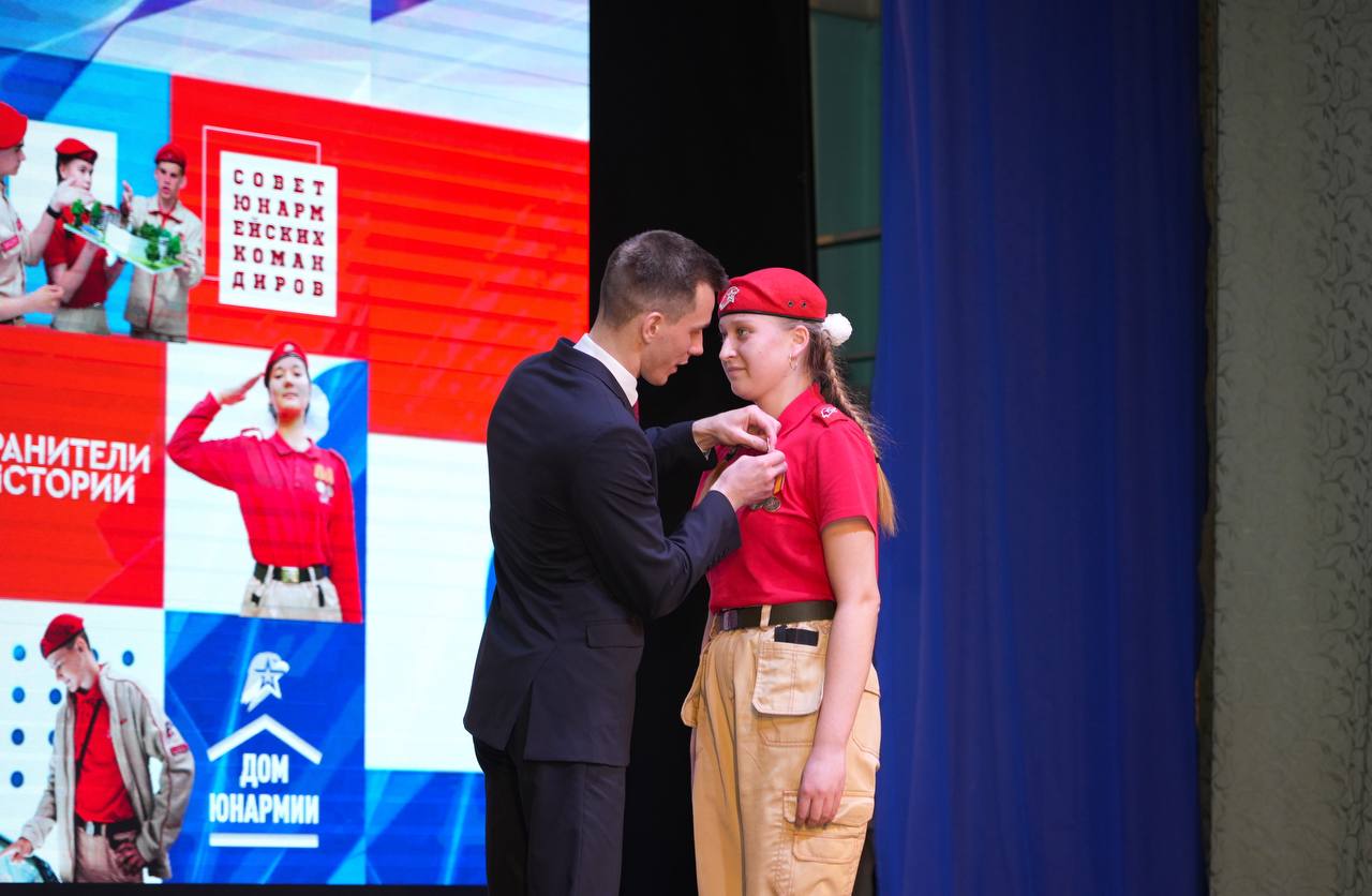 За верность выбранному пути, вклад в развитие движения Владислав Николаевич вручил нагрудный знак «Юнармейская доблесть I степени» Екатерине Весниной и Веронике Куксовой.