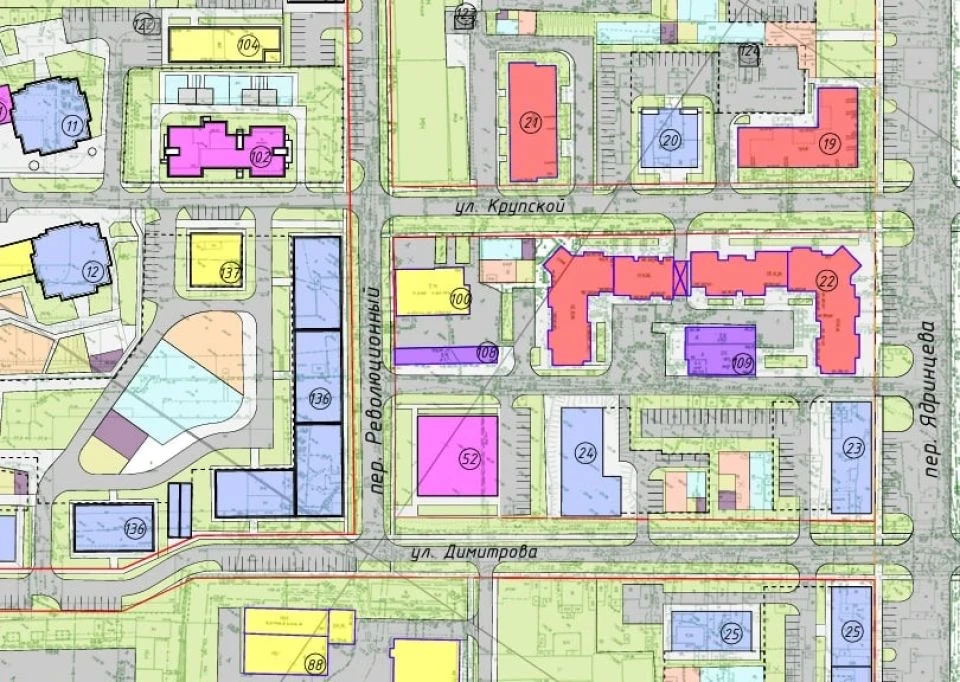 Девелопер решил воспользоваться возможностью построить дом больше, чем допускает изначальный документ. Речь идет о территории, ограниченной улицей Димитрова, переулком Ядринцева и проездом Димитрова.