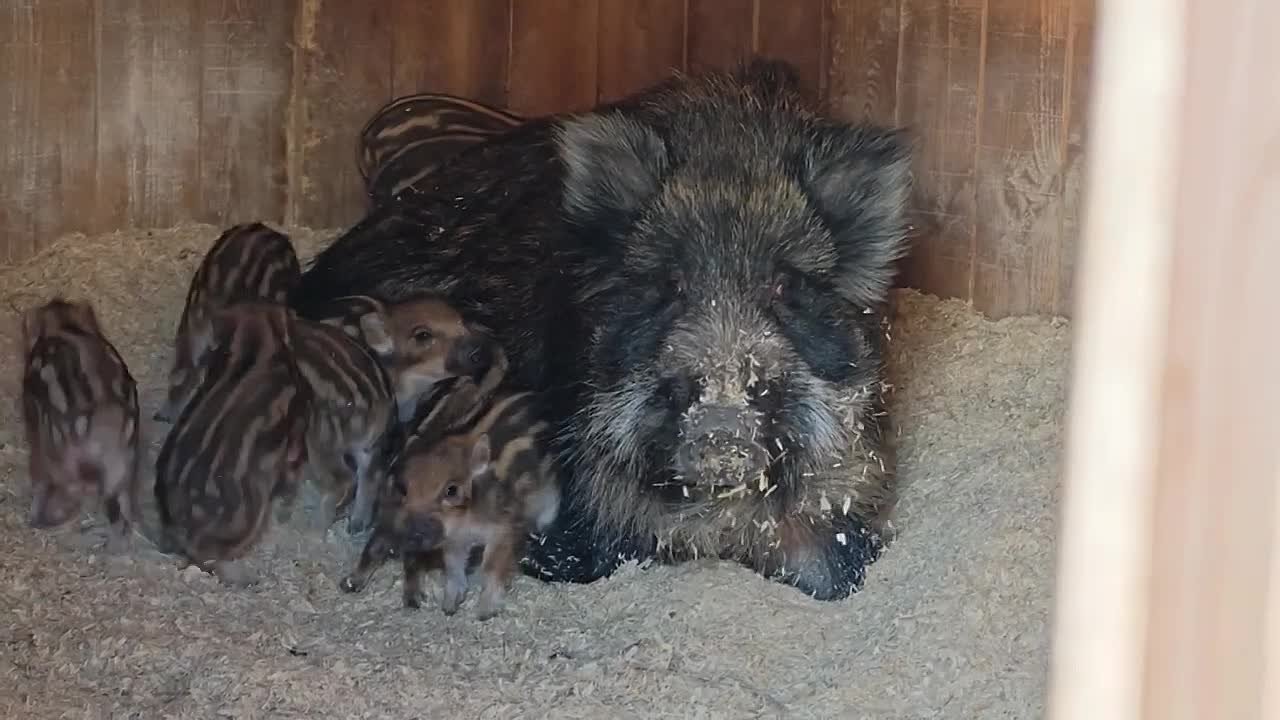 Двухнедельные кабанчики из барнаульского зоопарка бегают и радуются жизни. И вы сегодня не грустите