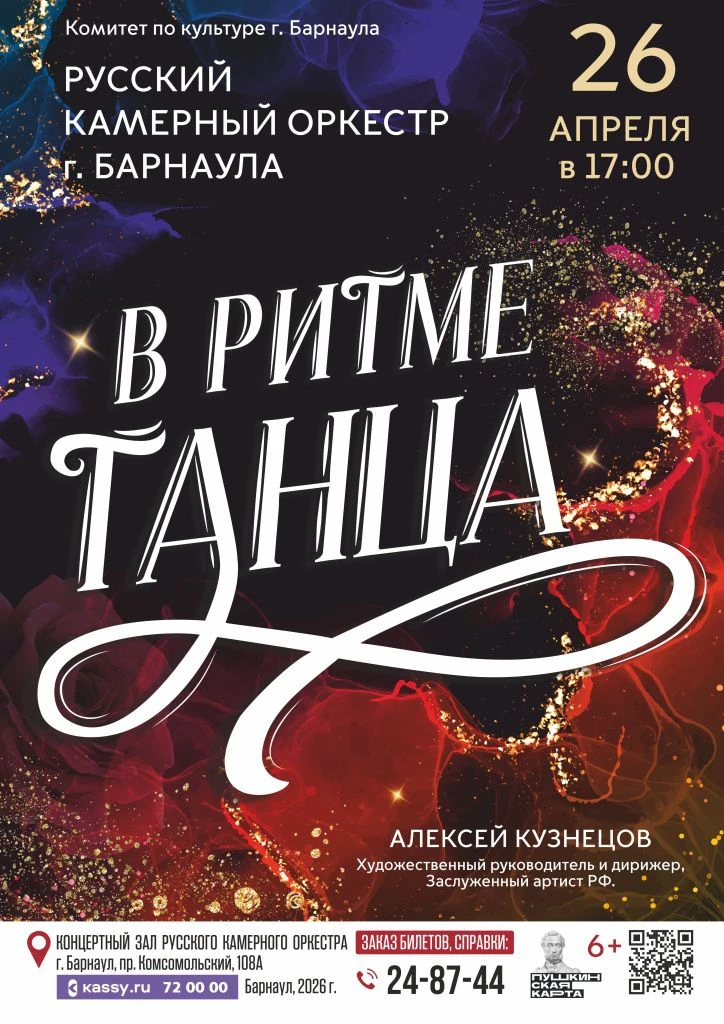 Концерт «В ритме танца» состоится 26 апреля в зале Русского камерного оркестра (пр-кт Комсомольский, 108а), начало в 17 часов.