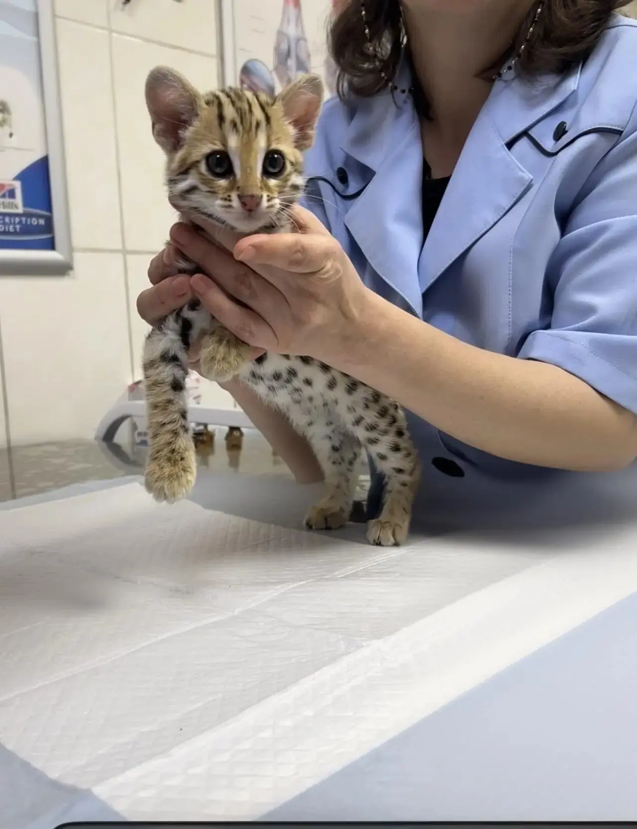 На приём в Центральную ветеринарную лечебницу принесли котёнка азиатской леопардовой кошки. Малышу поставили плановую прививку.