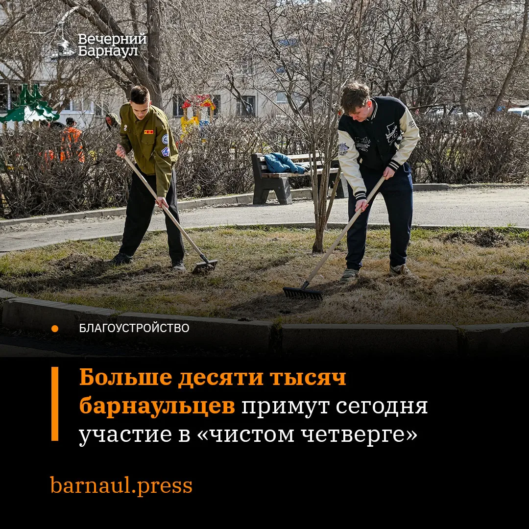 Сегодня, 16 апреля 2026 года, на территории Барнаула состоится «чистый четверг». Его проведут в рамках месячника весенней санитарной очистки и благоустройства.