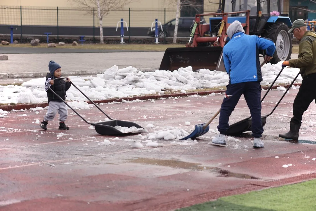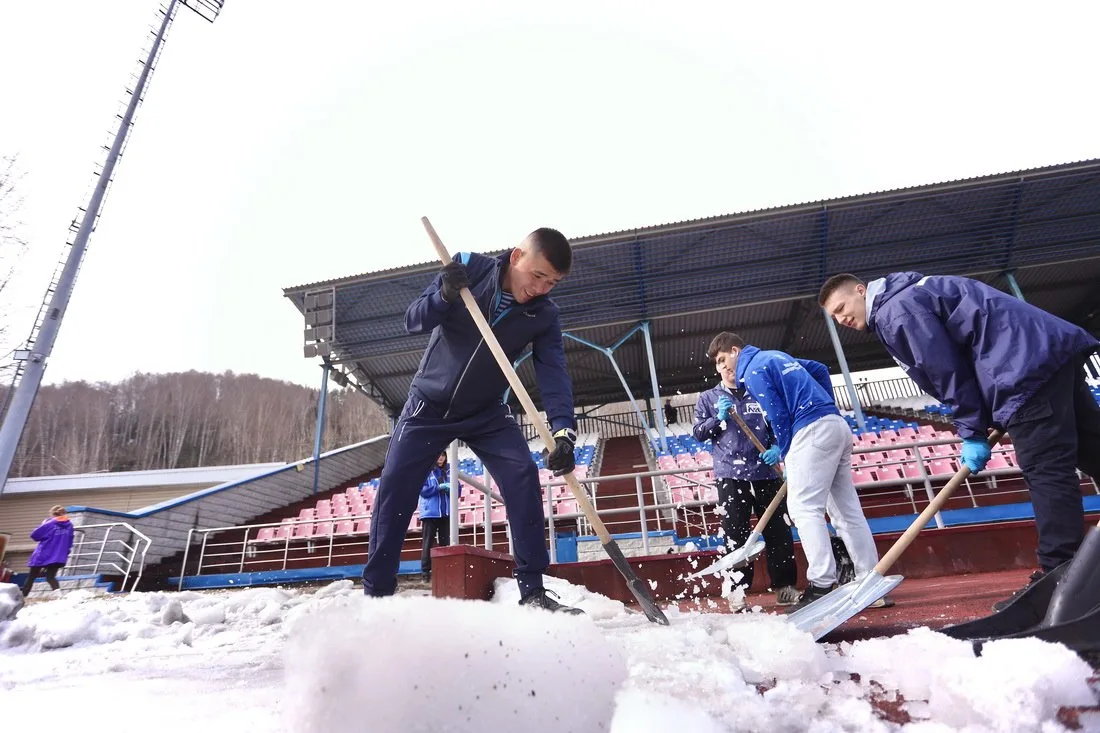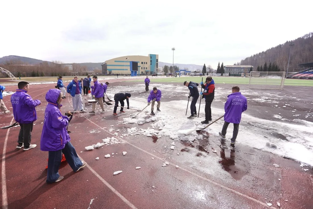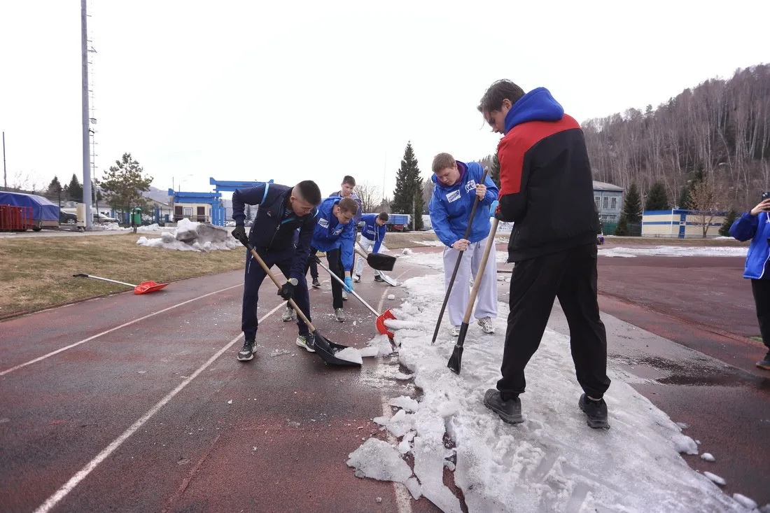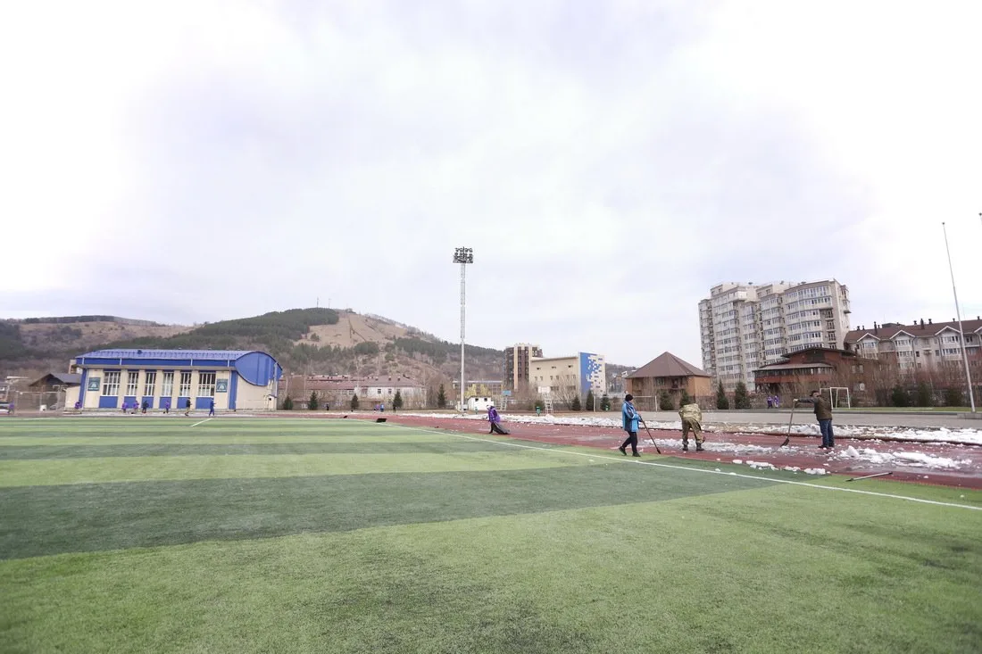 В Горно-Алтайске провели весеннюю уборку стадиона "Спартак"