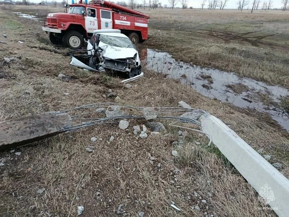 Водитель легковой машины во время поездки не справился с управлением в селе Ключи. Транспорт съехал с проезжей части и врезался в опору линии электропередачи.