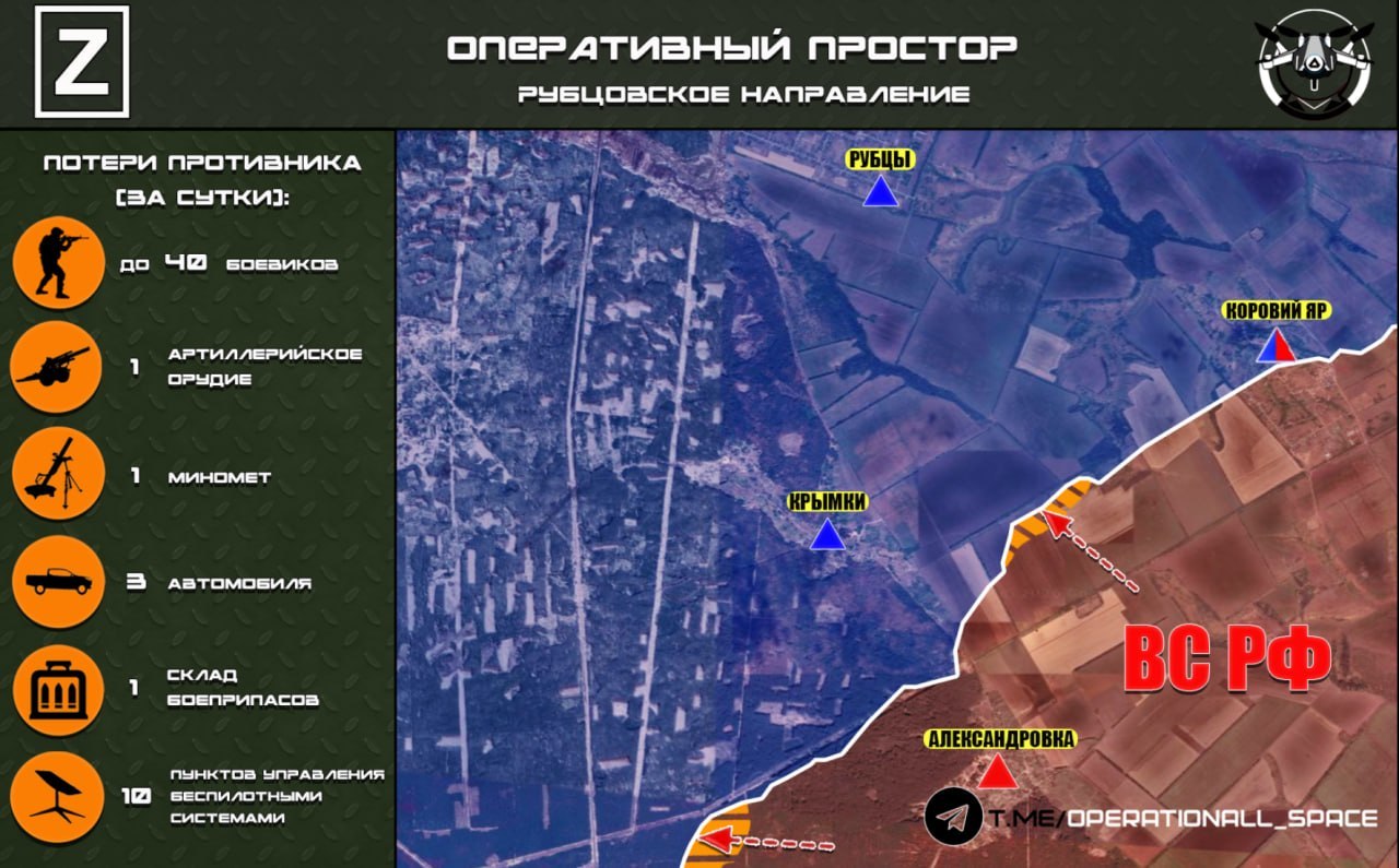 На Рубцовском направлении ВС РФ наступают в районе н.п. Крымки, сообщает "Оперативный простор":