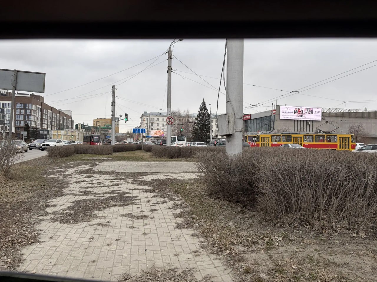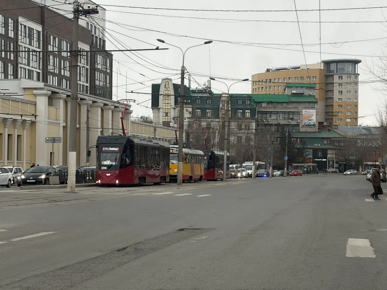 Утром 17 апреля в Барнауле на остановке "Площадь Победы" собралась пробка из трамваев