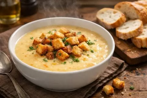 Иногда достаточно лишь аромата, чтобы вернуть всех на кухню. Сырный суп — это не просто блюдо, это настоящая кулинарная любовь, пронизанная мягкостью и бархатной текстурой. С первого глотка хочется ближе прижаться к столу, а когда на него щедро посыпают хрустящими чесночными сухариками, удержаться от удовольствия становится невозможно.