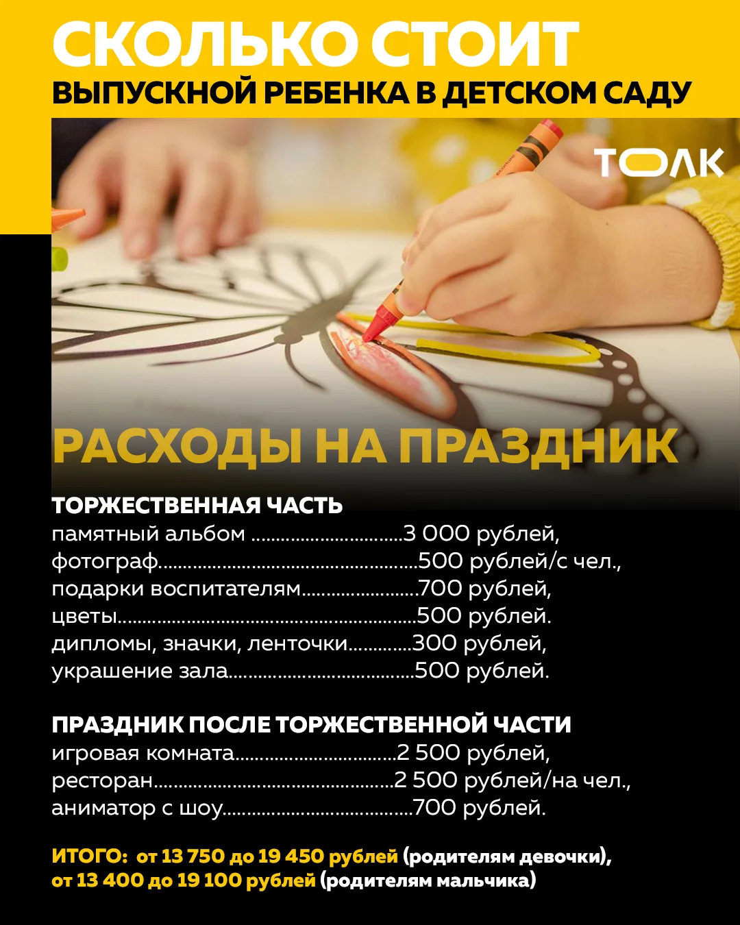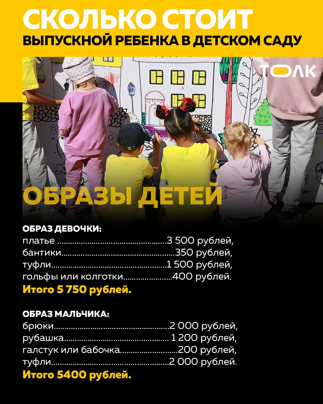 "Толк" выяснил, сколько стоят платье принцессы, банты и праздник в детском саду в 2026 году и можно ли уложиться в разумную сумму. Спойлер: выпускной обойдется примерно в 13-20 тысяч рублей, учитывая образы и само торжество.