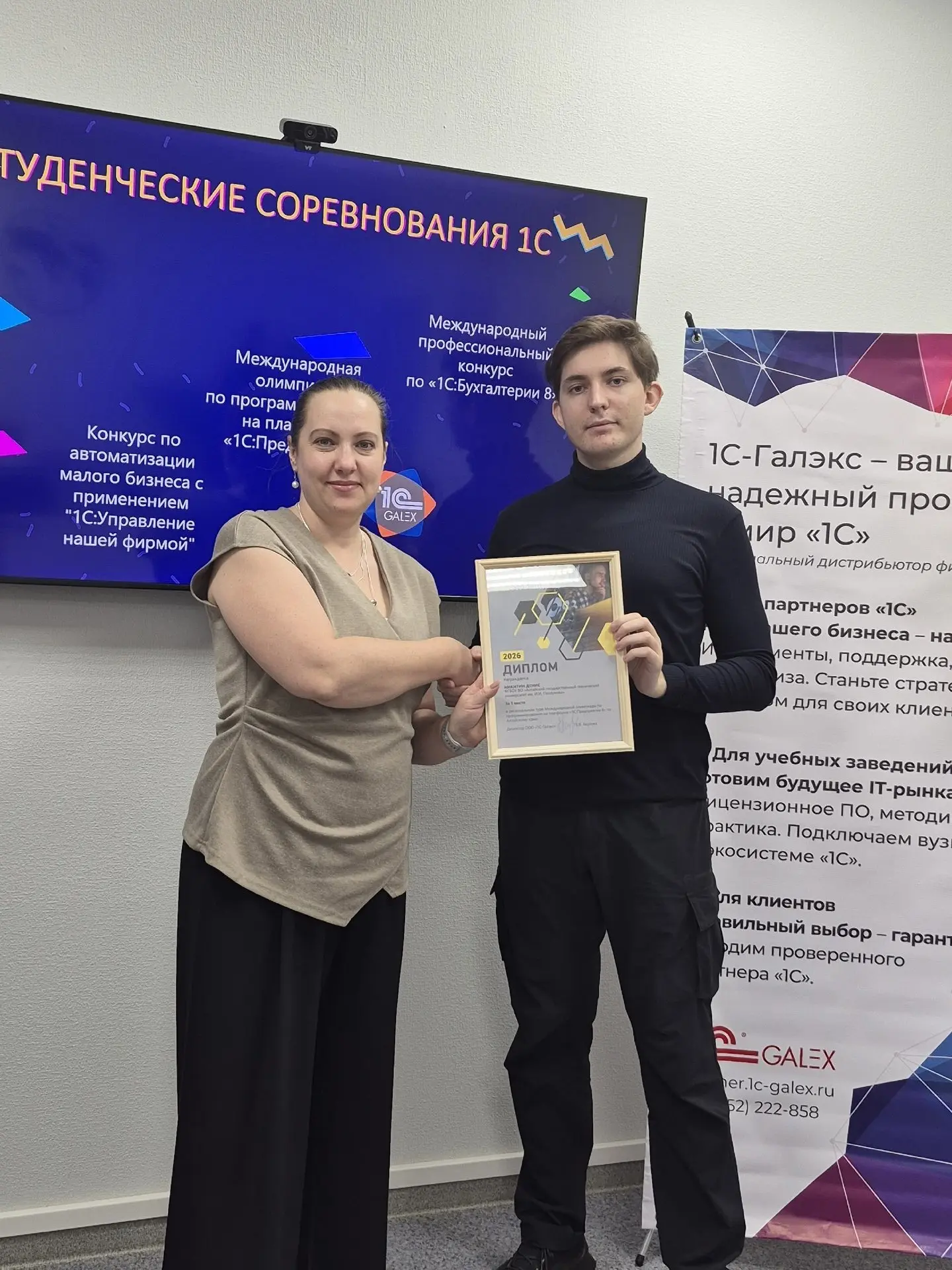 Вячеслав Соловиченко показал лучший результат в конкурсе по автоматизации малого бизнеса на платформе «1С: Управление нашей фирмой». Денис Никитин успешно прошёл отбор в Международной олимпиаде по программированию на базе «1С: Предприятие 8». Теперь студенты представят вуз на федеральном уровне.