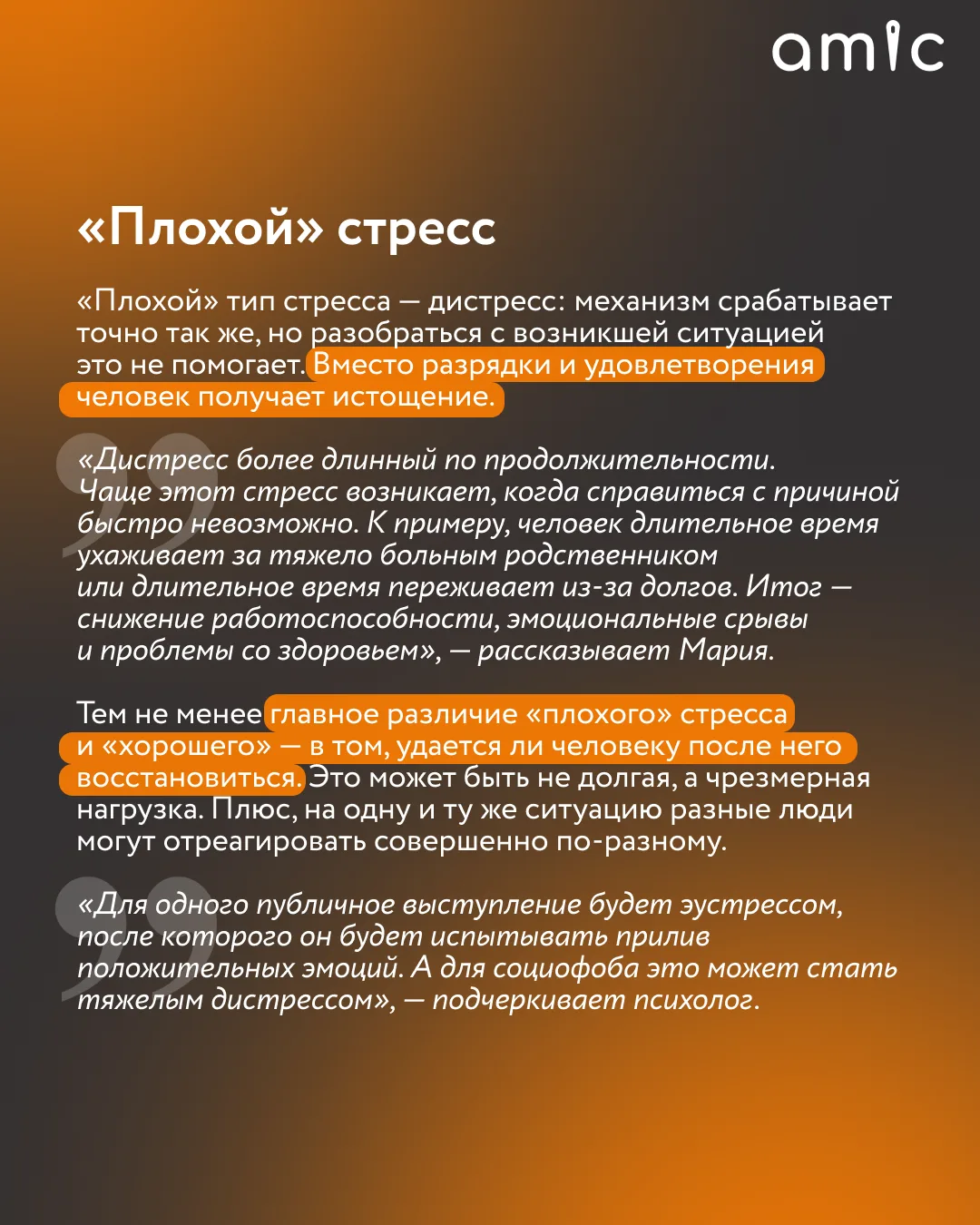 Мы узнали у психолога, как «хороший» стресс превращается в «плохой» и почему самое страшное — это свыкнуться с его постоянным присутствием. Подробности — в наших карточках.
