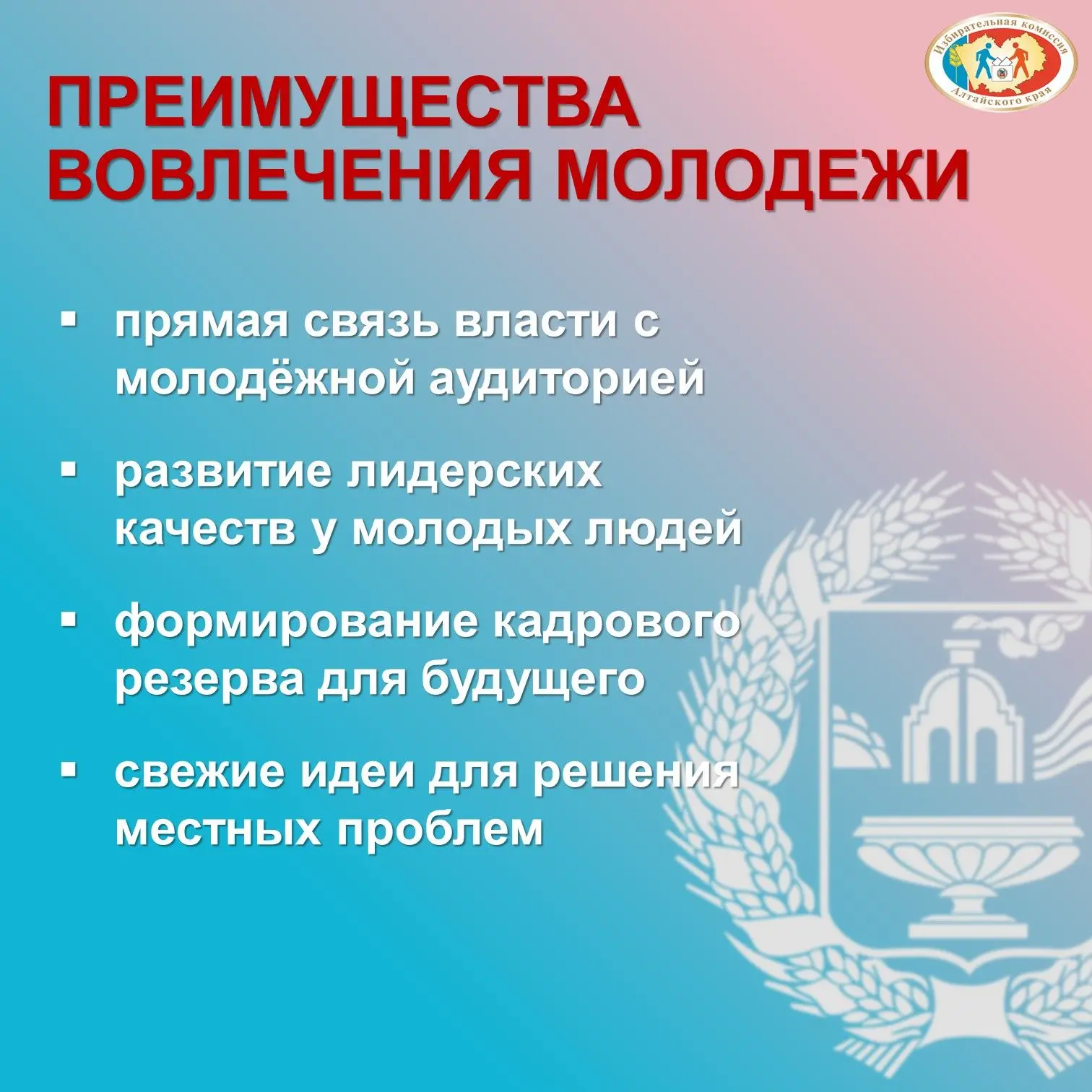 Широкое вовлечение молодёжи позволяет формировать кадровый резерв региона, обеспечивает прямой диалог власти с подрастающим поколением, а также открывает свежий взгляд на решение местных проблем.