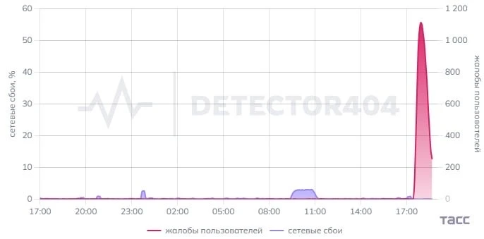 Об этом свидетельствуют данные портала Downdetector.