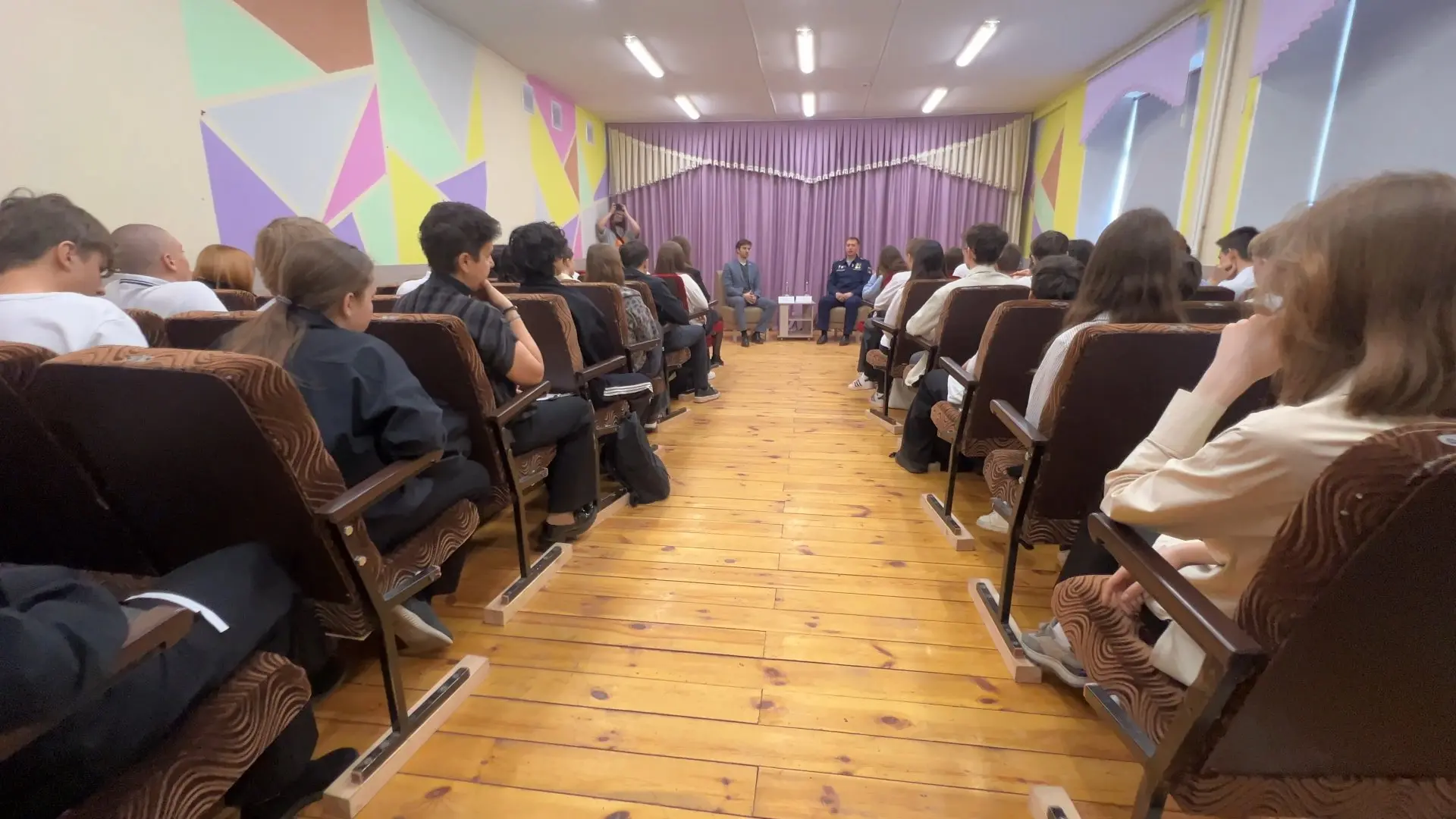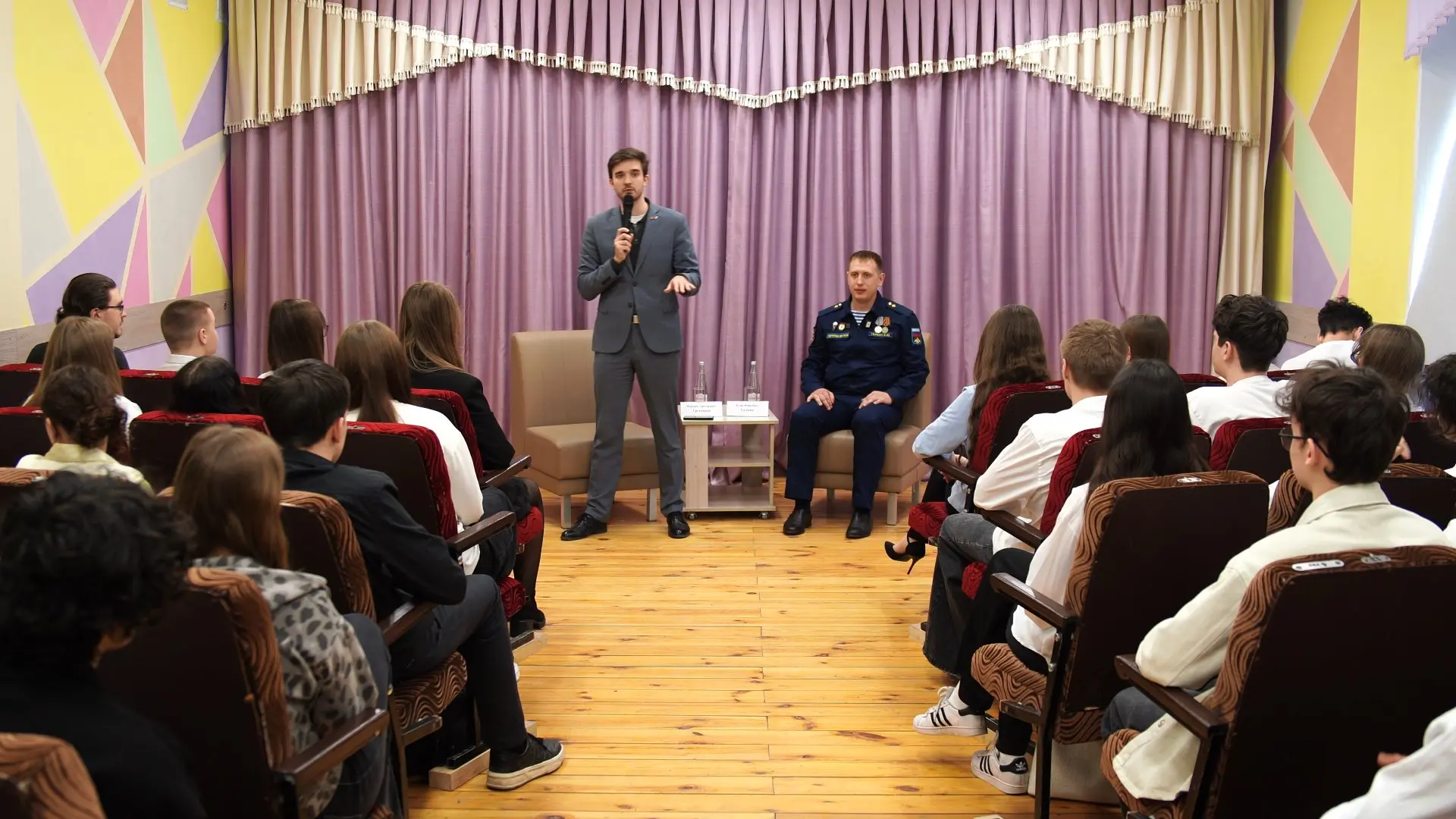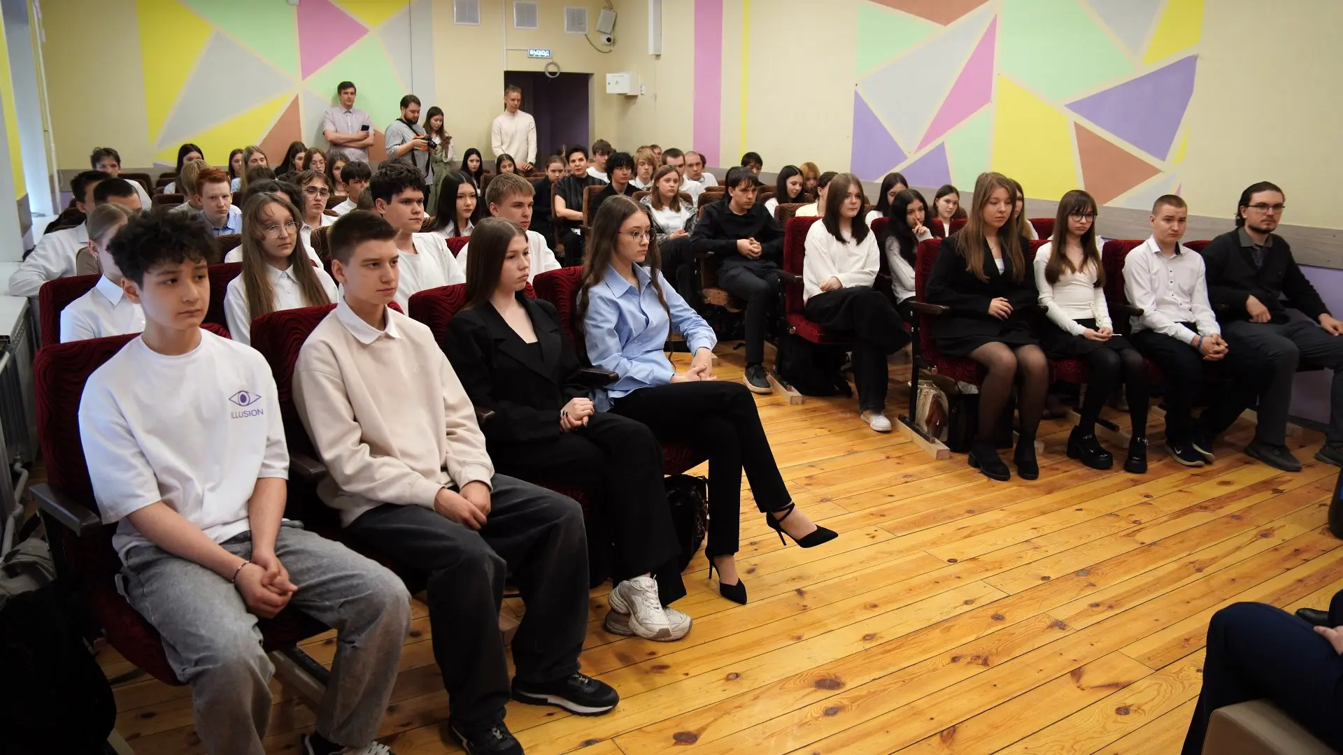 На урок мужества пришли ученики с 8 по 11 классы. По словам заместителя директора по воспитательной работе Елены Терещенко, почти в каждом классе есть ученики, чьи родители имеют отношение к специальной военной операции. Кто-то находится на передовой, кто-то помогает в тылу. Встречи с героями в школе проводят периодически, но в формате открытого диалога — впервые.