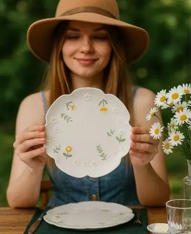 - Матовая глазурь и неровные края создают легкий винтажный стиль.