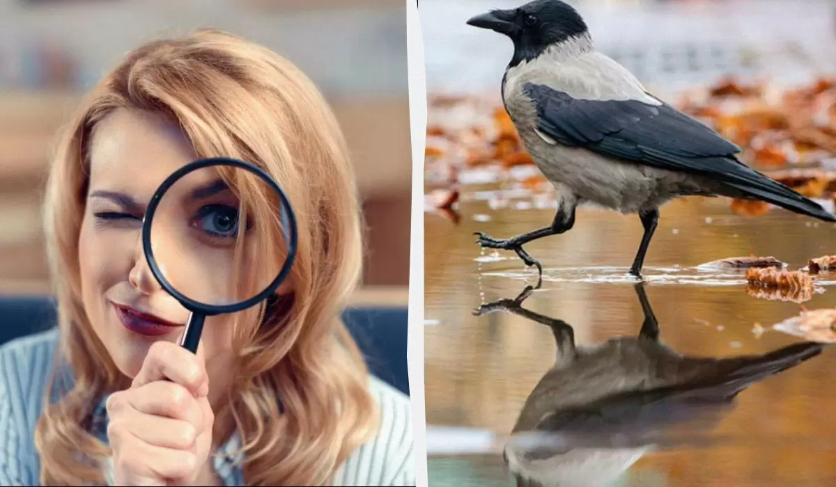 - Третье: В отражении вороны в луже не хватает клюва — это проявляет хитрость задания.