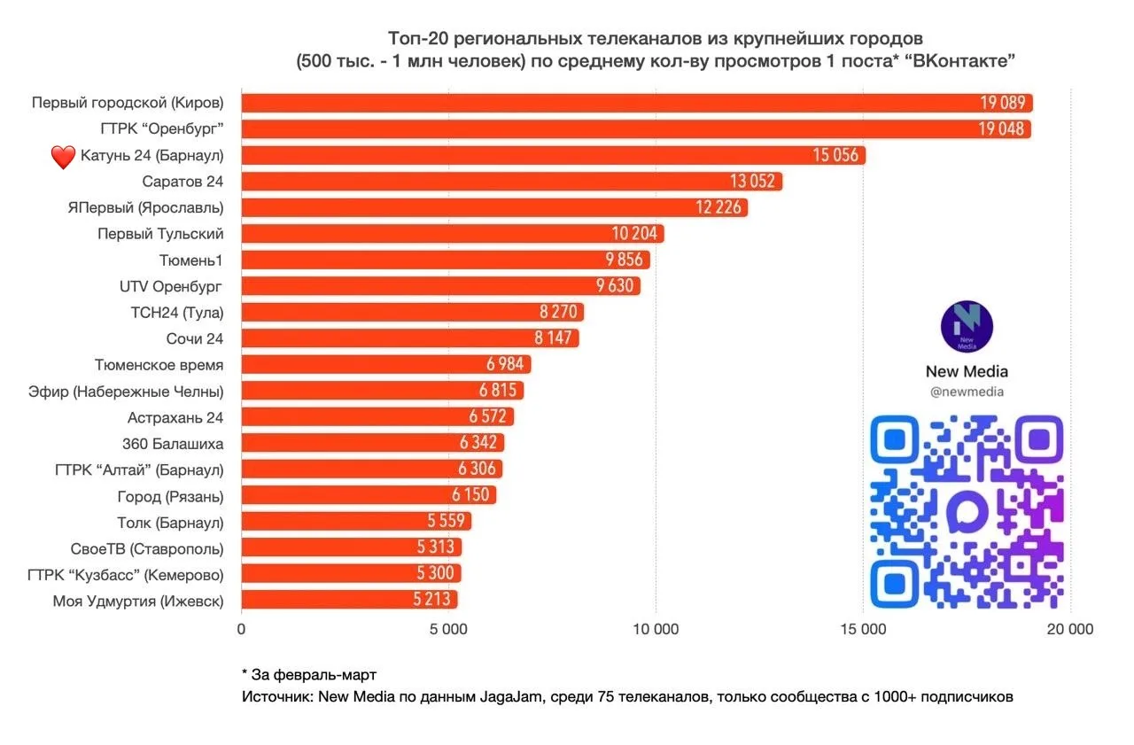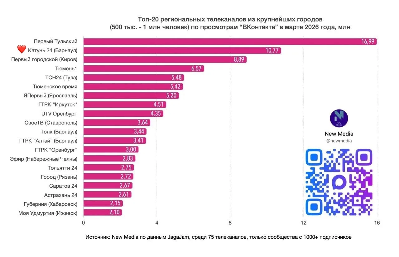 «Катунь 24» — в топе самых просматриваемых региональных телеканалов во «ВКонтакте» за март