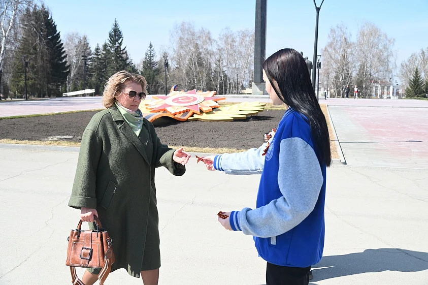 Георгиевские ленты начали раздавать на улицах Барнаула