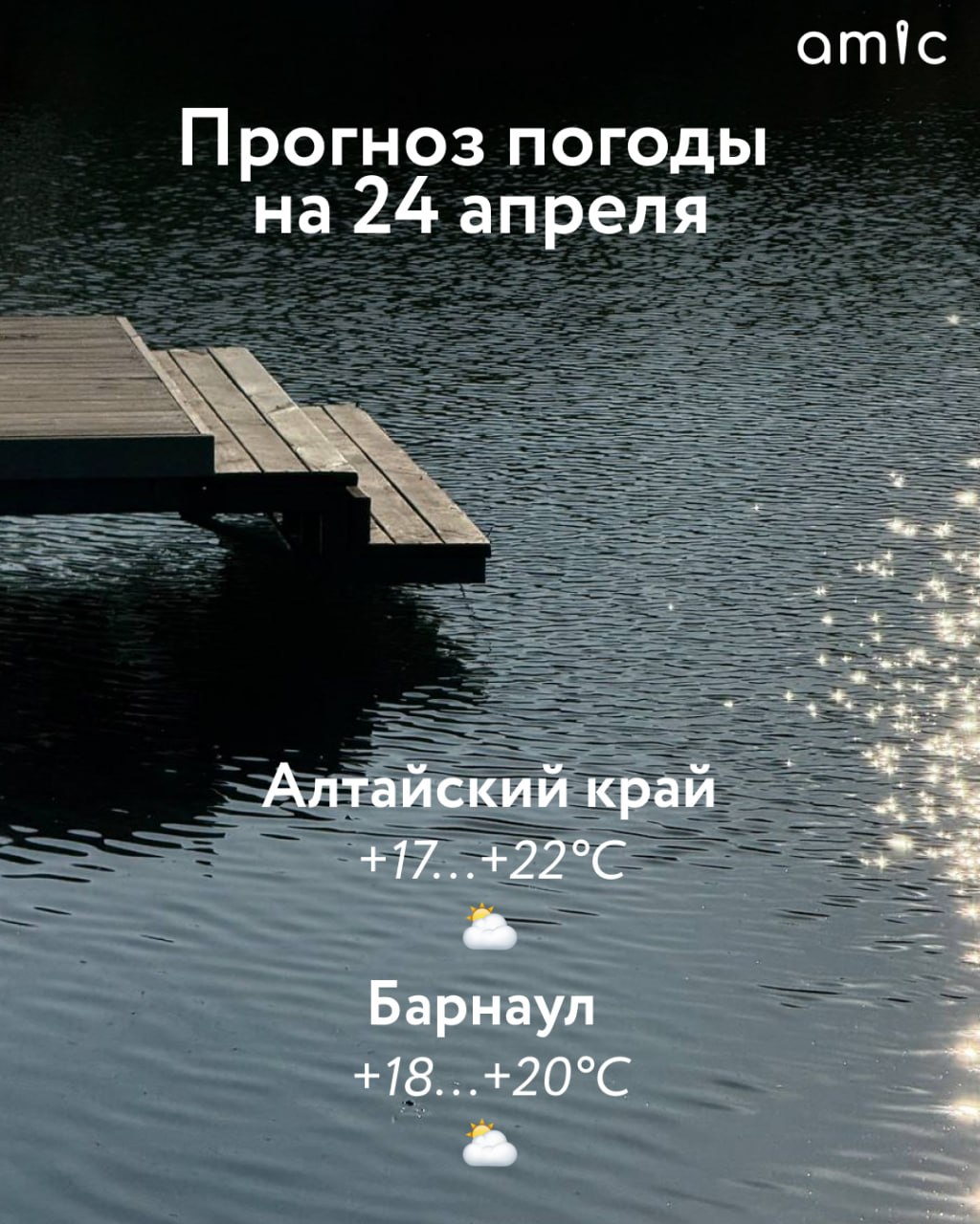 В Алтайском крае днем 24 апреля прогнозируют от +17 до +22 градусов. Осадков в этот день не будет. В Барнауле синоптики прогнозируют также +18...+20 градусов и без осадков. Дарим билет на концерт Ирины Круг