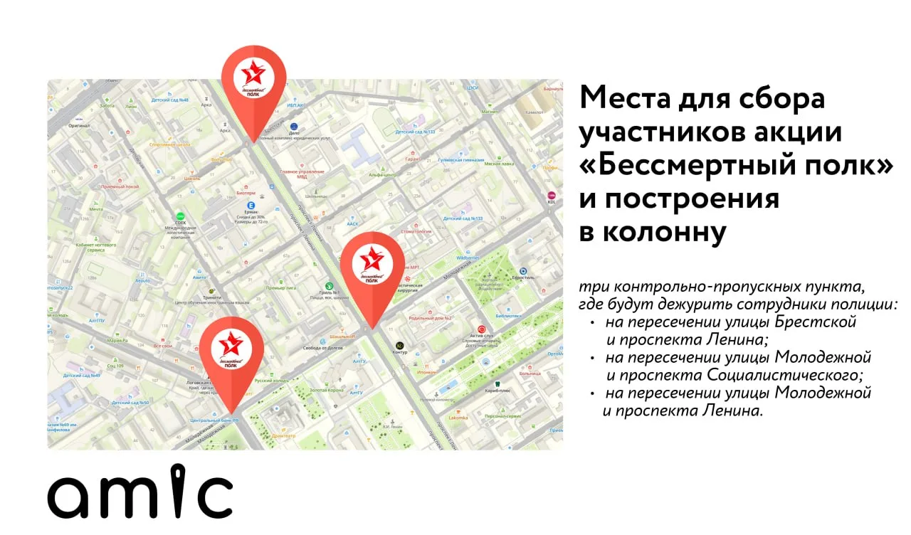 Движение колонны "Бессмертного полка" 9 мая в Барнале начнется сразу после прохождения войск Барнаульского гарнизона. Оно традиционно будет проходить по нечетной стороне проспекта Ленина, вдоль трибун на площади Советов, до улицы Димитрова.