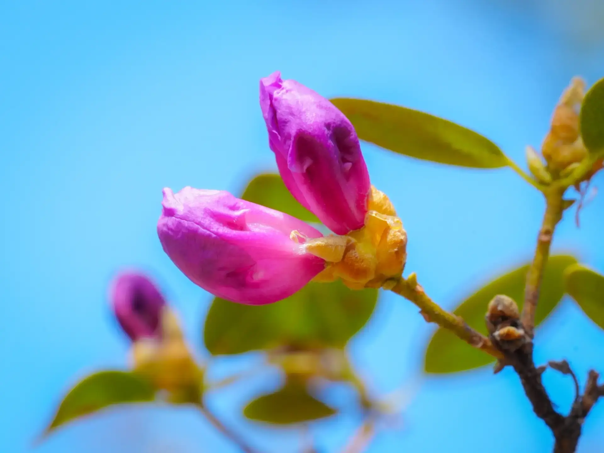 Их встретили сотрудники Алтайского заповедника в южной части Телецкого 21 апреля. Бутоны рододендрона Ледебура) ещё не до конца раскрылись, но совсем скоро берега озера окрасятся в лиловые тона.