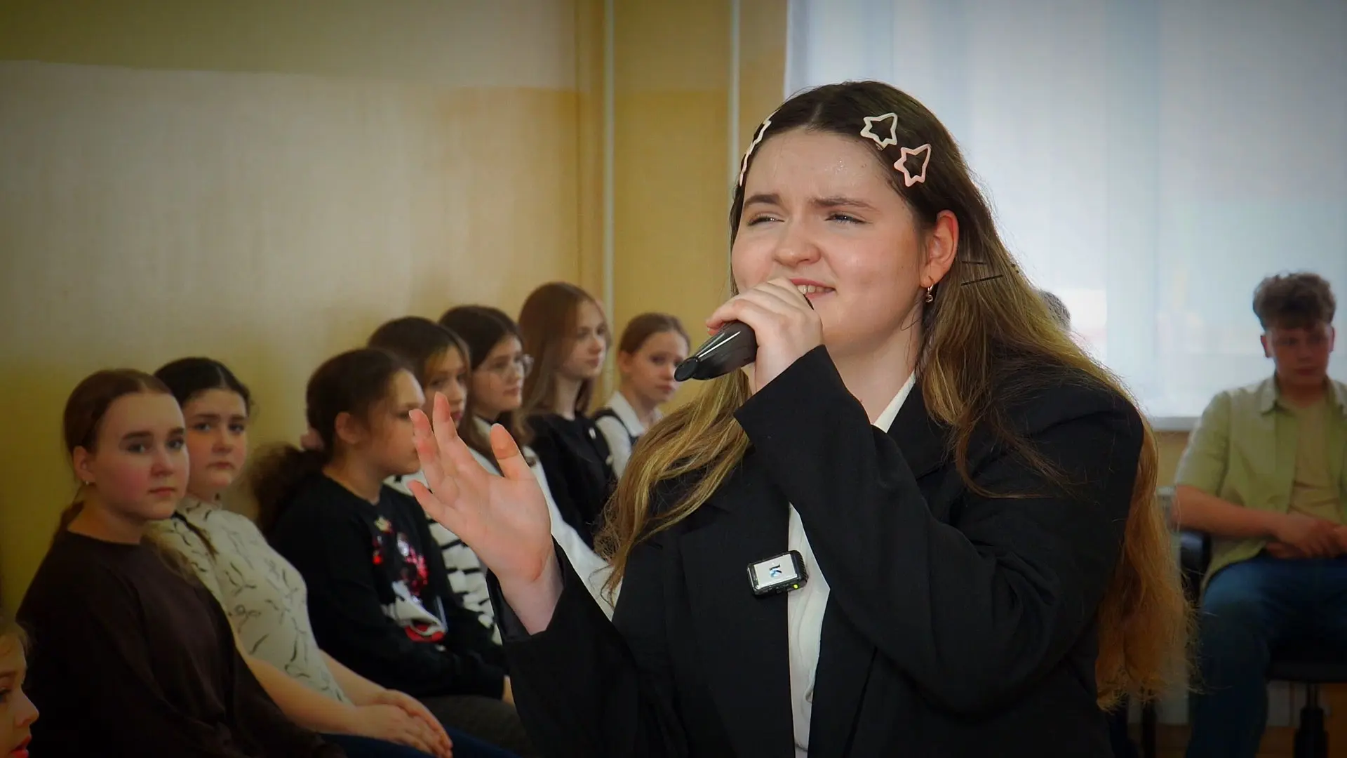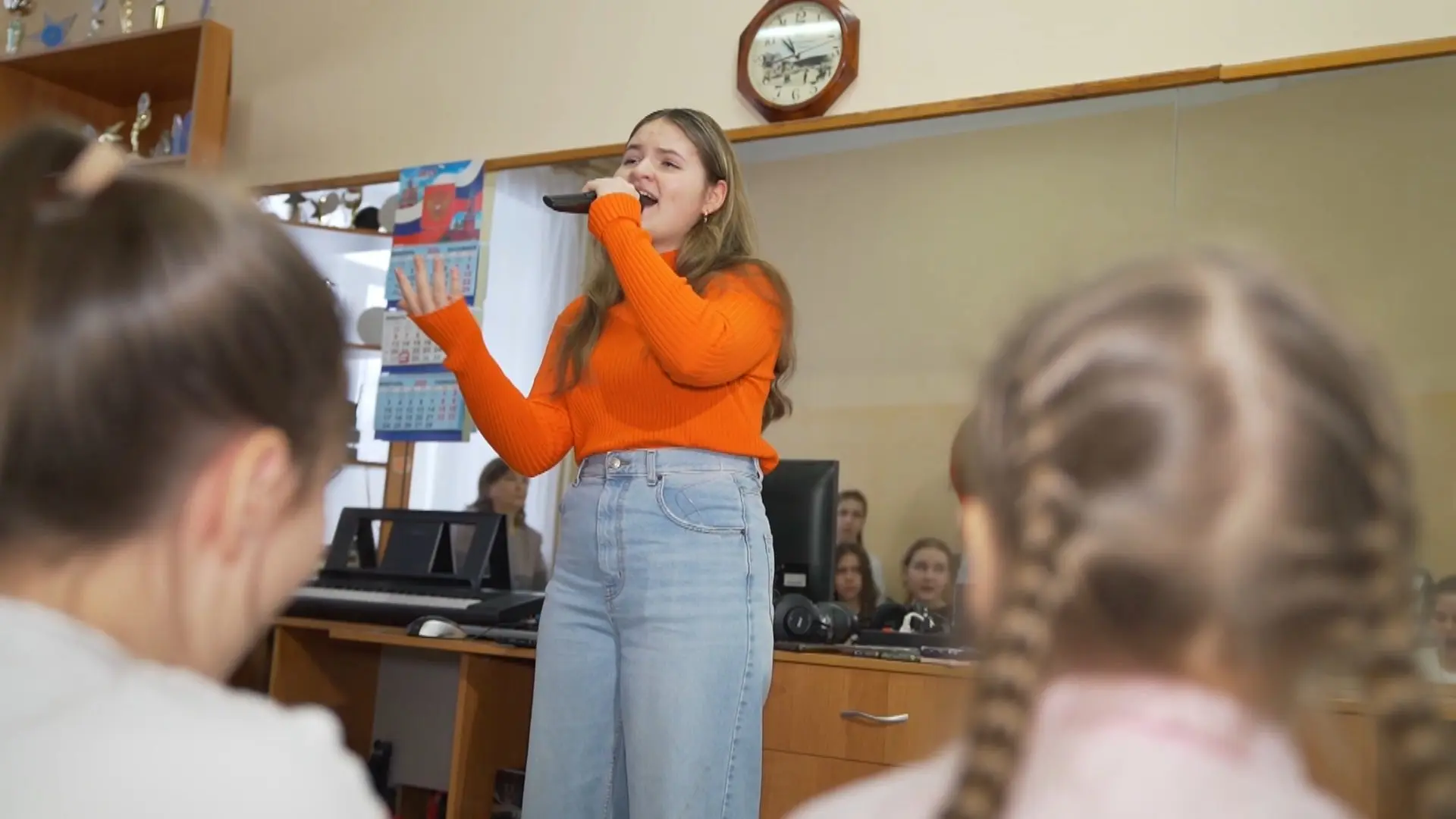 В эфире программы «Наши» рассказали историю барнаульской вокалистки Ангелины Макаровой. Семиклассница совмещает школьные уроки с четырьмя репетициями в неделю, исполняет лирические композиции и недавно одержала победу в международном конкурсе Star Teens, обратив на себя внимание продюсера федерального проекта «Голос. Дети».