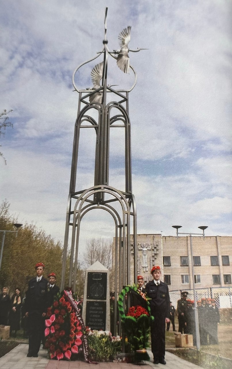 Позднее, в 2011 году, к 25-й годовщине аварии на ЧАЭС, было принято решение о создании памятника. В основу проекта легла композиция православной часовни с колоколом, крестом и изображением летящих журавлей на куполе. Мраморную стелу, установленную внутри часовни, изготовили на Колыванском камнерезном заводе. Высота памятника-часовни составила 9,7 метра. Торжественное открытие состоялось 26 апреля 2011 года.