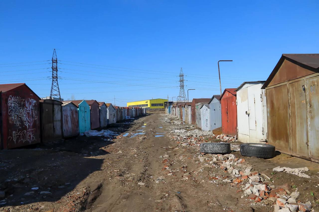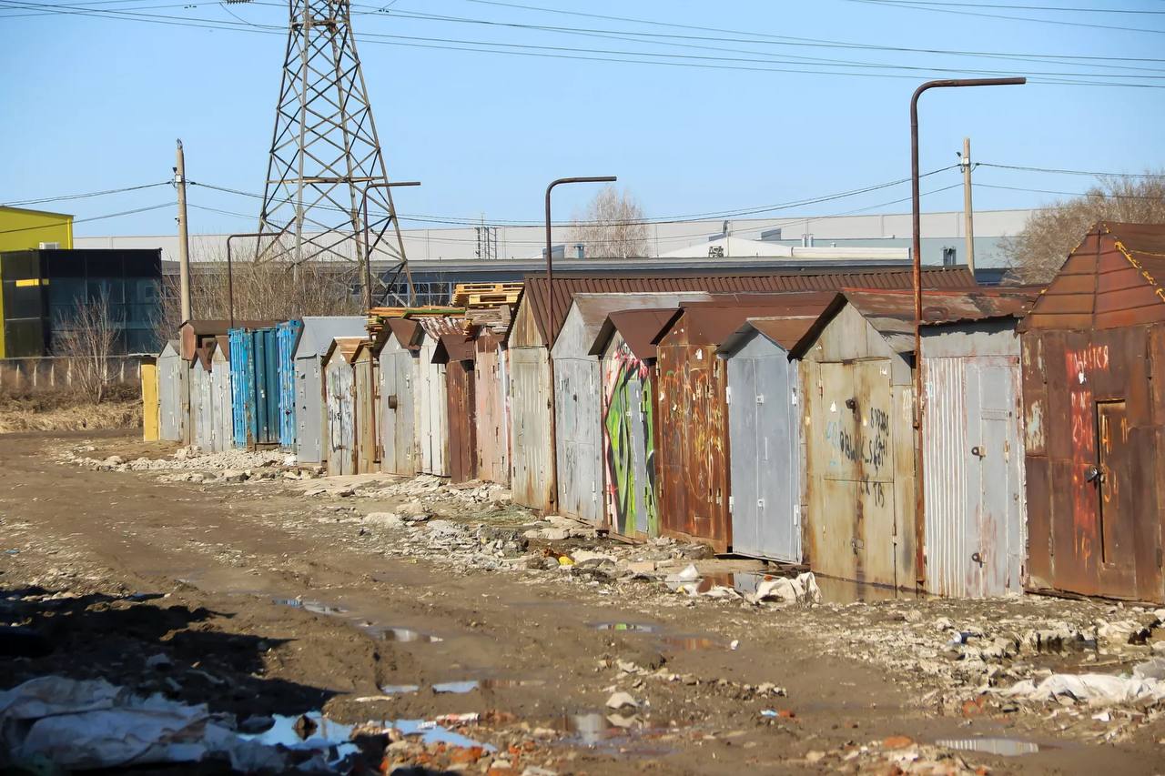 Неузаконенные гаражи стояли на зеленой территории и мешали благоустройству. Владельцам предложили альтернативное место – большой участок на озере. Сейчас здесь стоят стройные ряды боксов-переселенцев, включая небезызвестную двухэтажную будку для охраны.