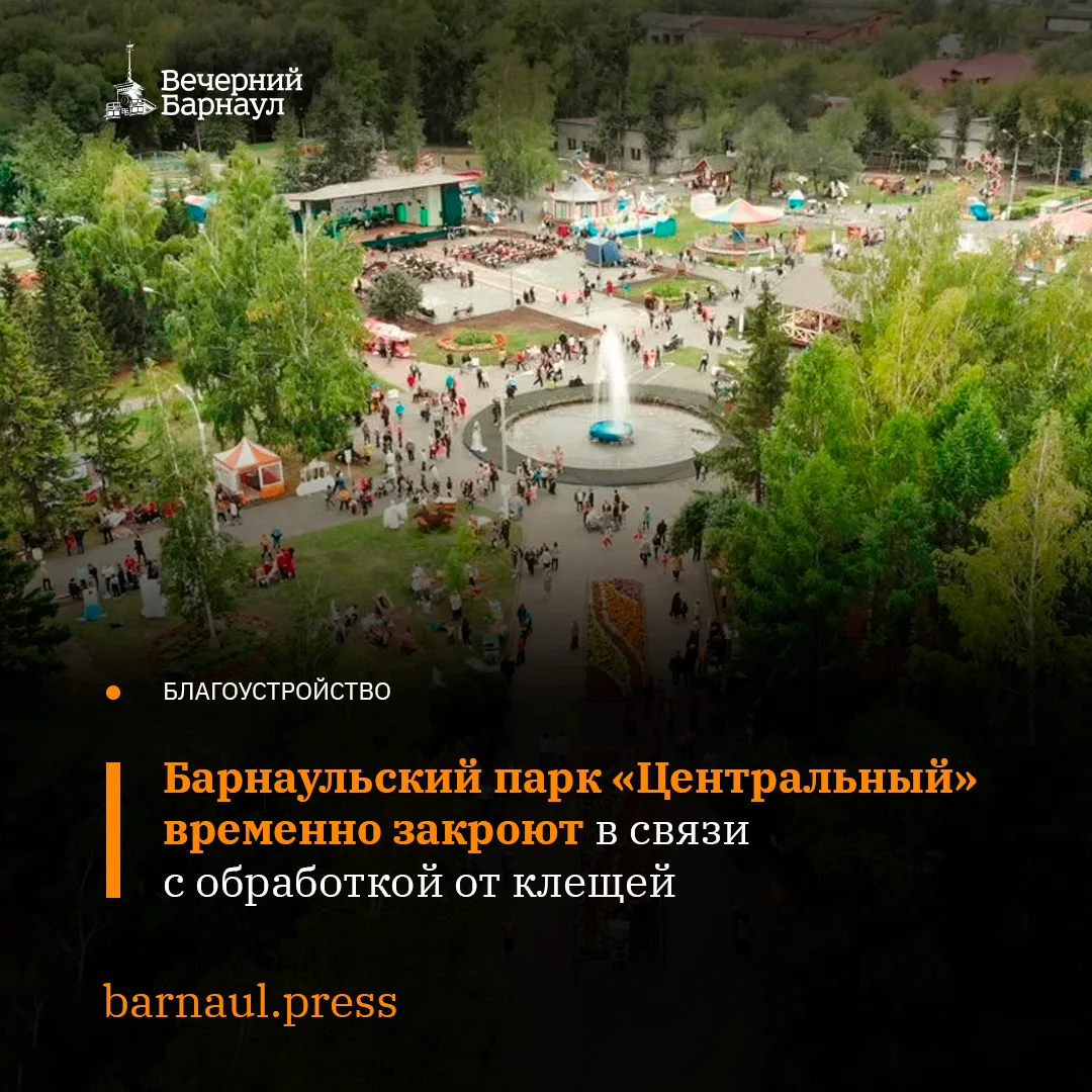 27 апреля после 22:00 в барнаульском парке культуры и отдыха «Центральный» начнётся обработка территории от клещей.