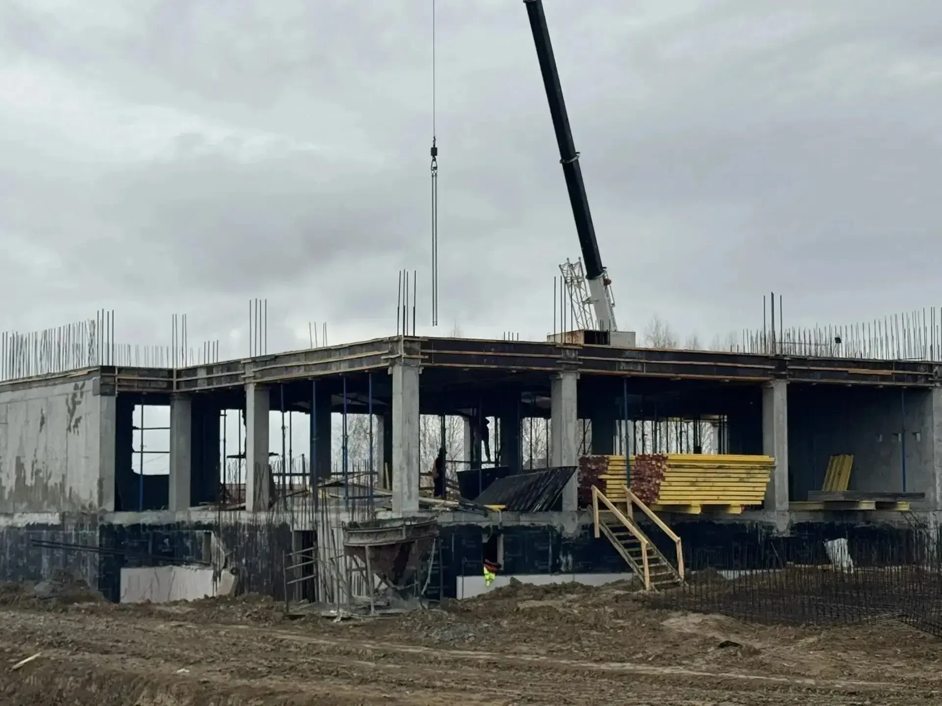 «Работы ведутся комплексно на всех четырех секциях, сейчас смонтированы металлоконструкции спортивного зала, установлены пожарные резервуары и сети водоснабжения, ведется строительство сетей теплоснабжения. Продолжаются работы по устройству монолитных железобетонных конструкций главного корпуса», – рассказал генеральный директор подрядной организации Павел Пеледов.