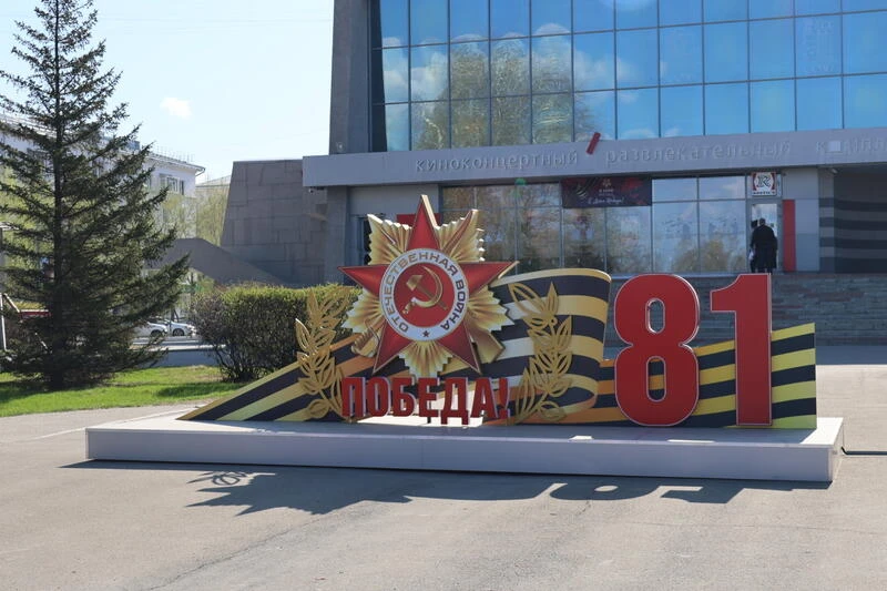 Барнаул полностью облачился в праздничное убранство к 81-й годовщине Великой Победы. Улицы города украсили тематические плакаты, баннеры, в том числе и с изображением Знамени над Рейхстагом и стелы "Город трудовой доблести". На главных площадях и въездных трактах взмыли ввысь флаги.
