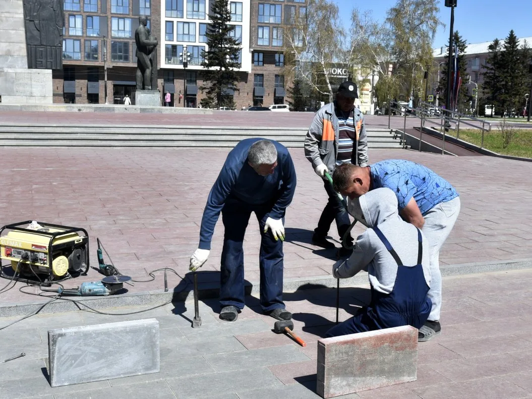 На цветнике уже установили артобъект «Орден Отечественной войны с георгиевской лентой». Сейчас подрядчик устраняет дефекты плиточного покрытия. Затем специалисты очистят плитку и опоры освещения, скосят траву.
