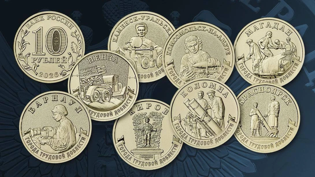 В России появятся новые памятные монеты номиналом 10 рублей. Серия называется «Города трудовой доблести».