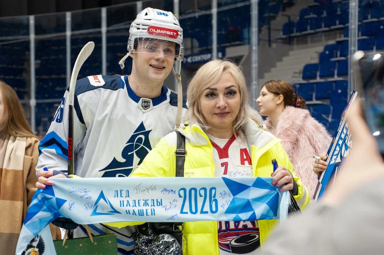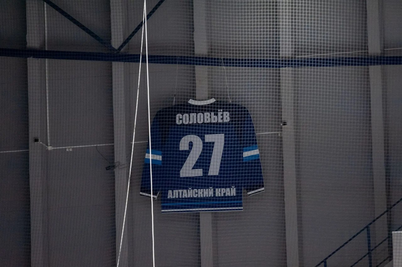 Также перед началом встречи под по сводами «Титов Арены» появился «свитер» с номером 27 легенды алтайского хоккея — Андрея Михайловича Соловьева.