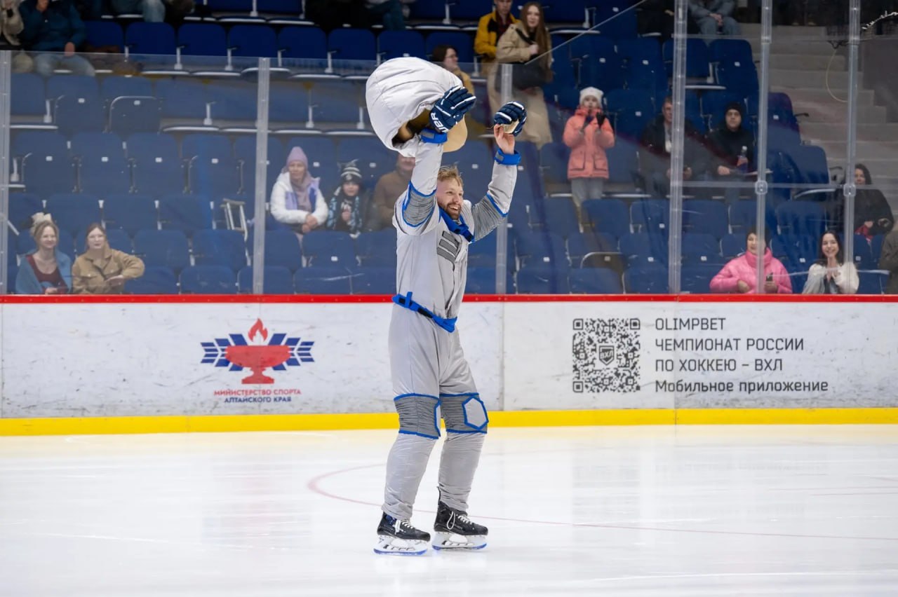 Алтайские хоккеисты-профессионалы сыграли выставочный матч вместе с болельщиками. Игра сопровождалась элементами шоу в исполнении самих спортсменов. Разнообразная программа была подготовлена и для болельщиков: конкурсы кричалок и плакатов, автограф-сессии и возможность лично пообщаться с представителями клуба.
