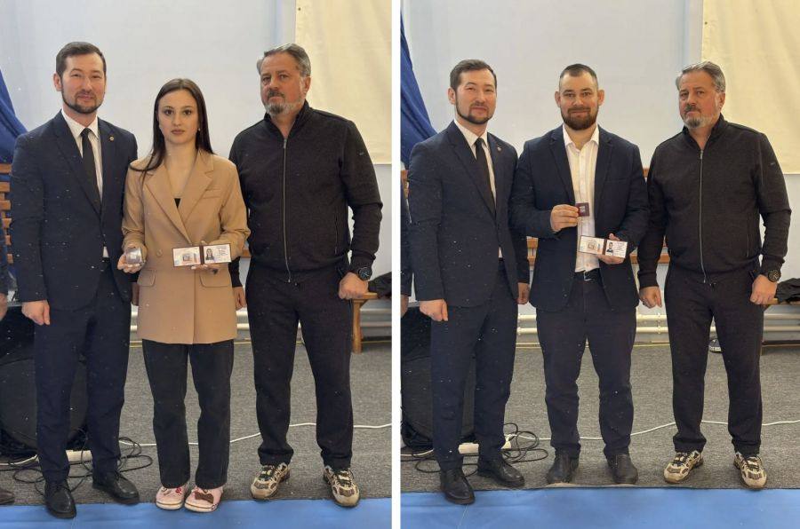 Во второй день соревнований Министр спорта Алтайского края Михаил Панфилов вручил удостоверения и значки мастеров спорта по самбо тренеру краевой спортивной школы Роману Мелехову и призёру первенства страны Анастасии Нестеровой.