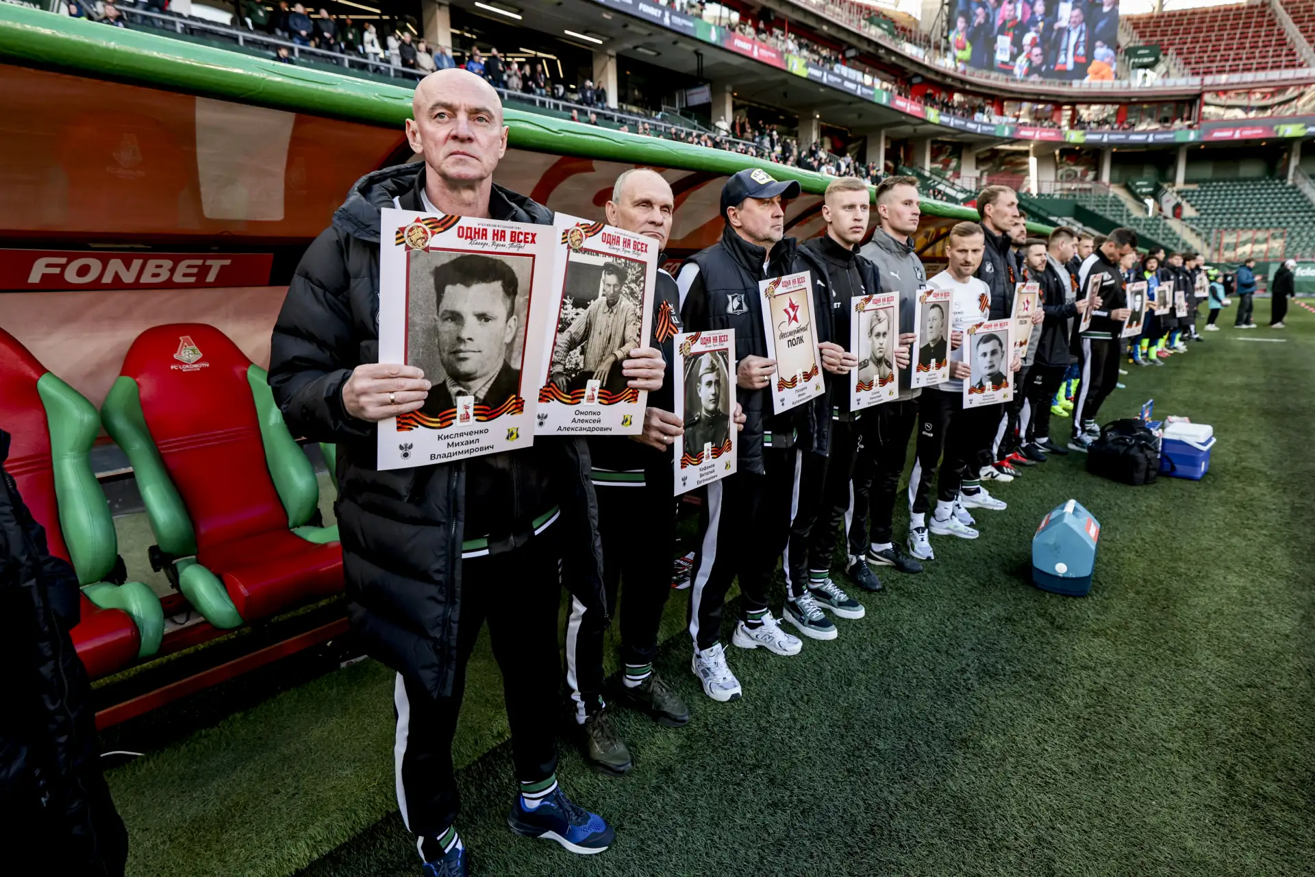 Игроки, тренеры и бригады арбитров выйдут на поле с портретами родственников-участников Великой Отечественной войны перед матчами FONBET Кубка России, Мир РПЛ, Лиги PARI и LEON Второй лиги в рамках мемориальной программы РФС «Одна на всех: команда, Родина, Победа!». На трибунах к ним могут присоединится и болельщики.