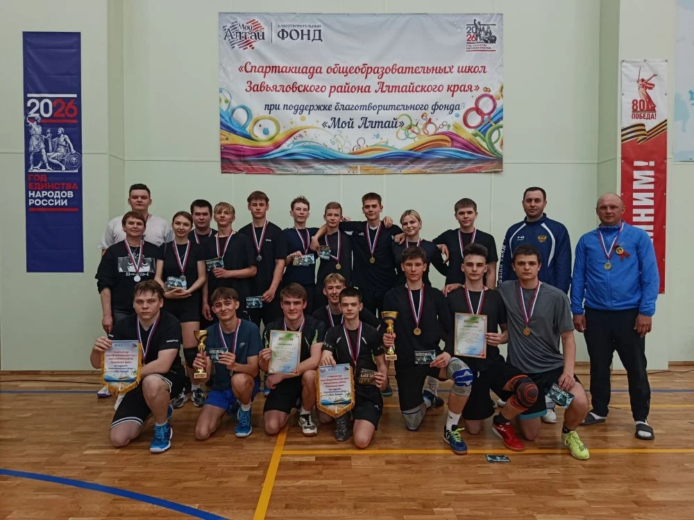 В Завьяловской спортивной школе турнир, проводимый в рамках Года единства народов России при поддержке благотворительного фонда «Мой Алтай», собрал шесть сильнейших волейбольных команд района: Завьяловская СОШ №1, Чистоозерская СОШ, Харитоновская СОШ, Гилевская СОШ, Гоноховская СОШ и Овечкинская СОШ